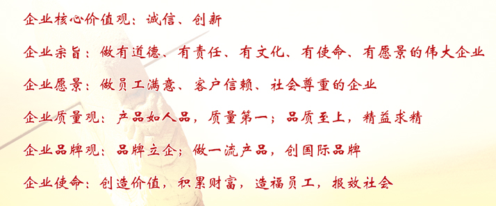 为促进公司的持续健康发展,公司以先进的文化引导人、教育人。确立了做“员工满意、客户信赖、社会尊重”的愿景。坚持“诚信、创新”的企业核心价值观,提出“诚信是立业之本,创新是发展源泉”的理念,尤其是在产品质量方面进一步确立了“产品如人品,质量第一,品质至上,精益求精”的质量观,时刻提醒每一名现代员工用自己的人品确保产品质量。